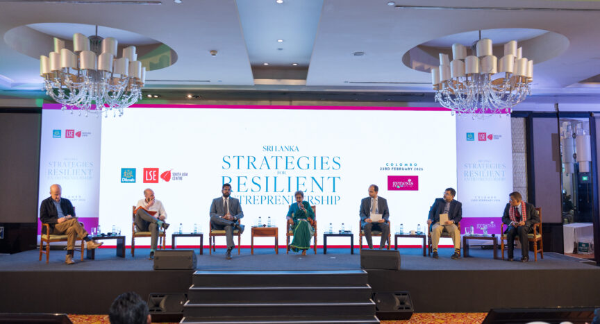 The speakers and presenters at the event included: Dr Luke Heslop (Senior Lecturer in Anthropology and Global Challenges at Brunel University of London), Animesh Jayant (Doctorand in the Department of Economics at LSE), David Lewis (Professor of Anthropology and Development at LSE), Abhilash Puljal (LSE alumnus and Country Director at India at Expectation State), Naufel Vilcassim (Director, LSE South Asia Centre and Professor in the Department of Management at LSE), Dr Dushni Weerakoon (Executive Director, Institute of Policy Studies of Sri Lanka), and Anushka Wijesinha (Co-Founder and Director, Centre for a Smart Future in Colombo).